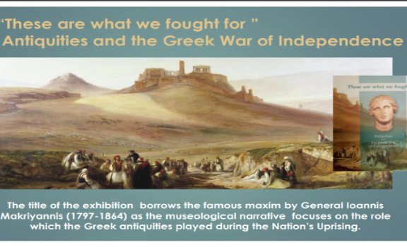 C'est le titre d'une exposition organisée par le Musée archéologique national à Athènes en 2021 pour commémorer les 200 ans depuis la déclaration de l'indépendance hellénique. "C'est pour eux qu'on s'est battus" est la phrase adressée par le général Macriyannis à sa troupe, expliquant que les Grecs se sont battus contre l'occupation othomane justement pour sauvegarder leur héritage culturel. Cliquer ici pour voir le diaporama.